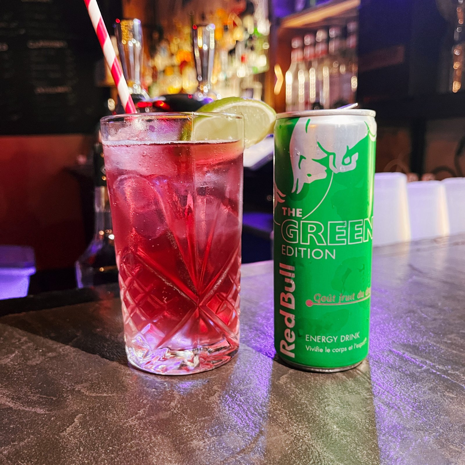 Prêt à dompter la bête ? Le Red Dragon est un cocktail puissant et fruité, où la vodka ou le gin (au choix) se marie au jus de citron vert pour une touche acidulée, adoucie par un sirop riche et rehaussée par les notes florales du sirop d’hibiscus. Le tout est boosté par la Red Bull Fruit du Dragon, pour un coup de fouet énergisant et une couleur rouge hypnotique !